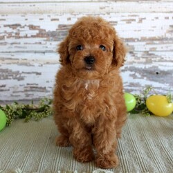 Meet Kibble! His estimated adult weight of 6-8lbs. Adorable Toy Poodle puppies born 02/16/2026 are now ready to find their loving forever homes! These sweet pups come from mom, Kelly, and dad, Rambo and are AKC registered. They have been vet checked and are up to date on all shots and wormer, and come with a 2-year genetic health guarantee for added peace of mind. Raised in a loving environment, they are very well socialized, great with kids, and have the sweetest, most affectionate personalities. These intelligent, low-shedding companions are playful, loving, and ready to bring joy to your family!