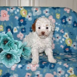 Meet your new BFF, Patches! This adorable Toy Poodle puppy is vet checked & up to date on shots & wormer, plus comes with a health guarantee provided by the breeder! Patches is well socialized & currently being family raised with children!